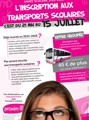 La campagne d'inscription aux transports scolaires s'étend du 21 mai au 15 juillet. (Attention nouveau logiciel)