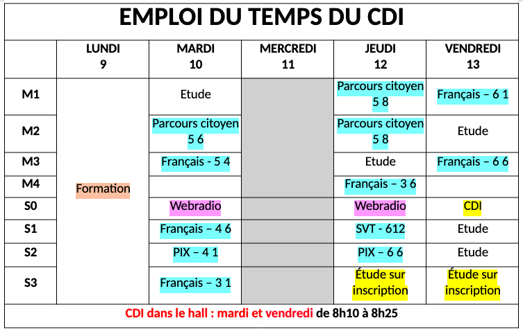 Planning du CDI
