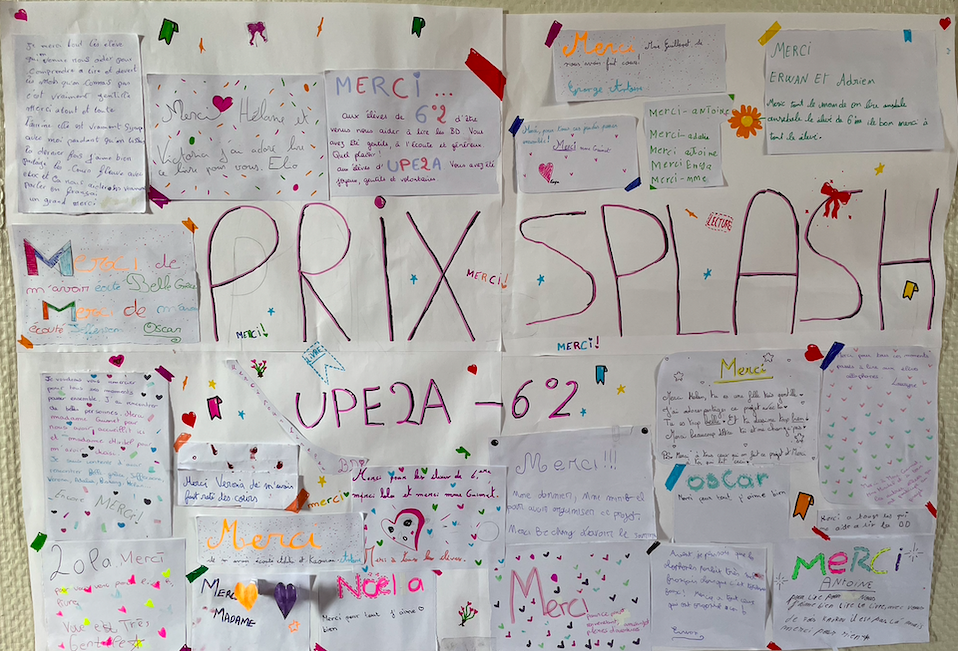 Ce sont 12 élèves de 6 2 qui ont lu les BD du Prix Splash Junior aux élèves de l'UPE2A. Les élèves ont pu échanger autour des BD et créer des liens lors de ce chouette projet.